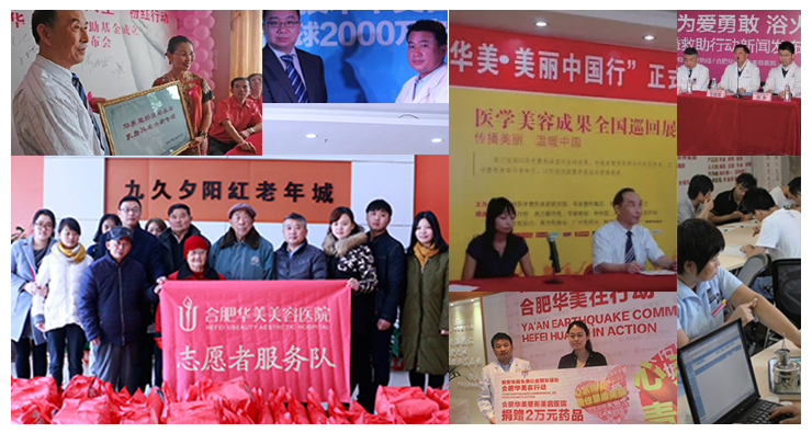 華美自建院以來一直熱心公益:心系雅安地震,華美愛心捐款;美麗中國行援助耳部畸形兒童;華美公益救助燒傷母親王阿姨;情系玉樹災(zāi)區(qū)華美愛心公益捐款;"暖冬公益"合肥華美新年敬老慰問活動(dòng)等等,受到社會(huì)的認(rèn)可與好評(píng)。